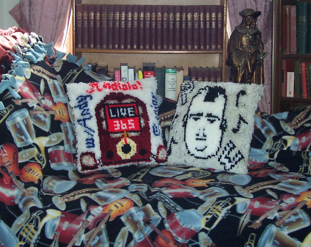 The RADIOLA! pillow, the Paul Whiteman "potatohead" pillow, and the music-themed blanket were made for me by listener Dennis Pereyra. Many thanks to Dennis for these lovely gifts!